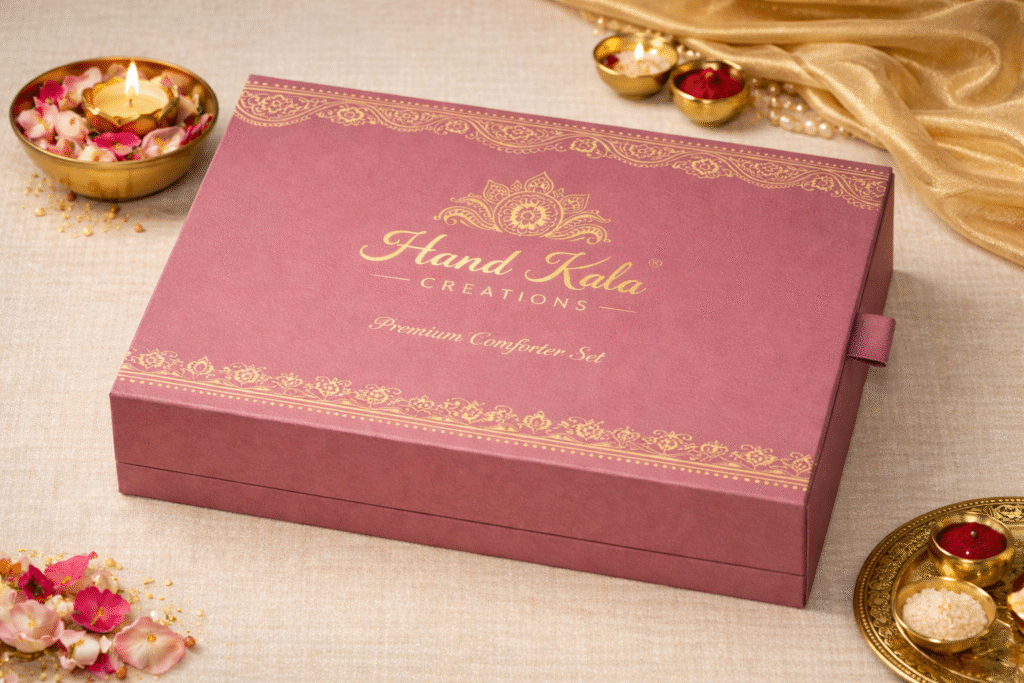 HandKala Bedding Gifting offers thoughtfully crafted bedding essentials that blend comfort, quality, and timeless design. Made with premium fabrics and careful detailing, our bedding gifts are ideal for weddings, corporate gifting, festivals, and special occasions—bringing warmth, elegance, and everyday luxury to every home.